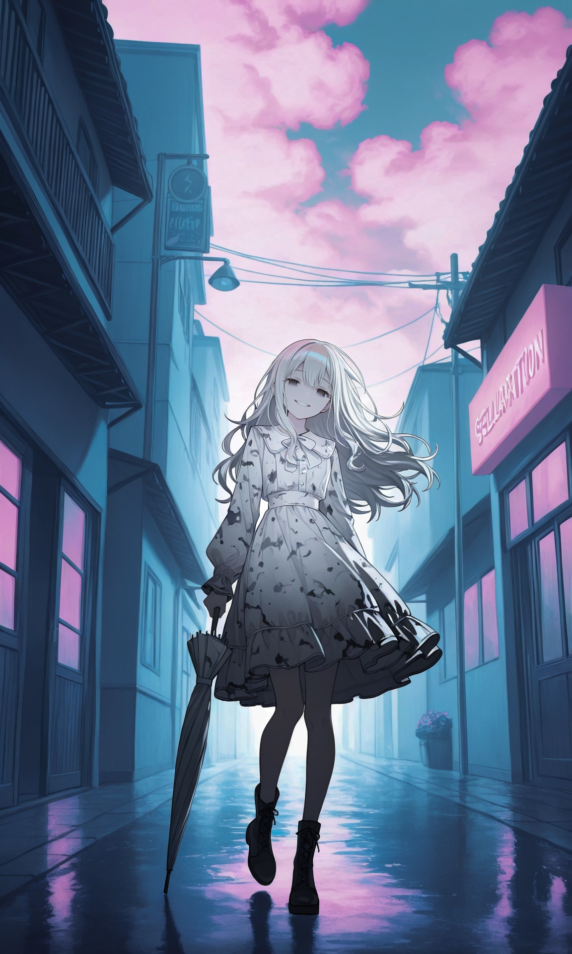 容姿: 女性?、白髪、死んだ目、白い服、黒い靴
