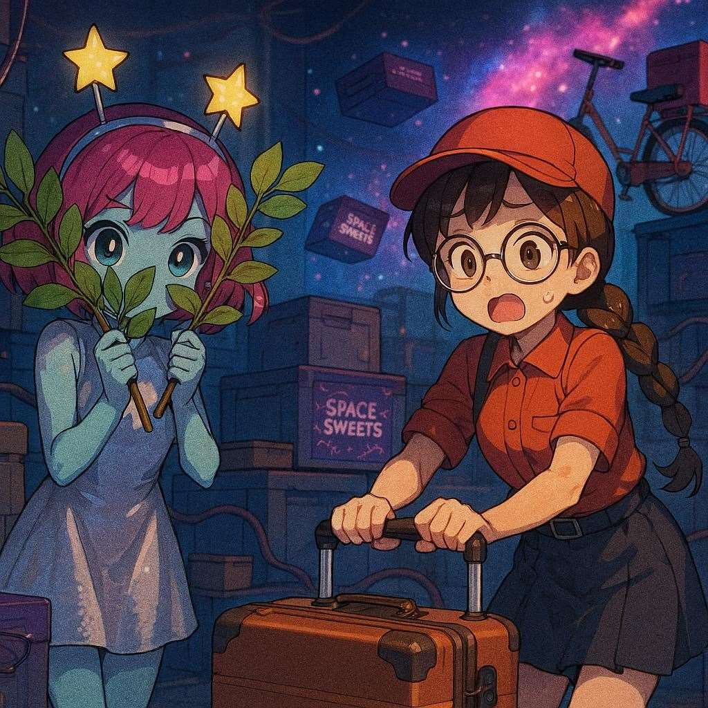 サプライズ擬態ちゃん(※配達員の眼鏡少女が擬態ちゃん宛ての荷物所持。擬態ちゃんの潜伏に気付いてない)