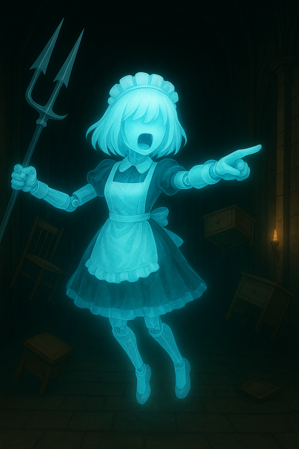 : 実体の無い幽霊型メイドロボ メイド服着用