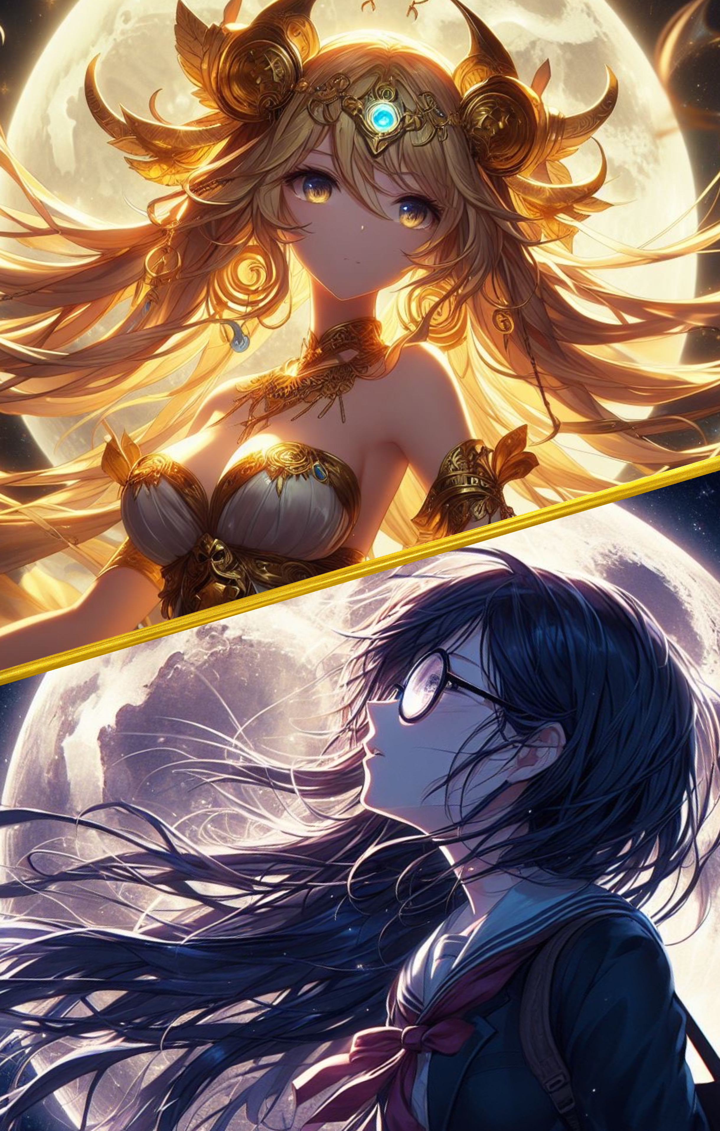 月は一際輝き月光が詠を包み込む。詠は己の使命を理解し、月の意思を得て覚醒。ツクヨミへと変貌を遂げる。